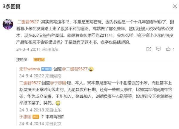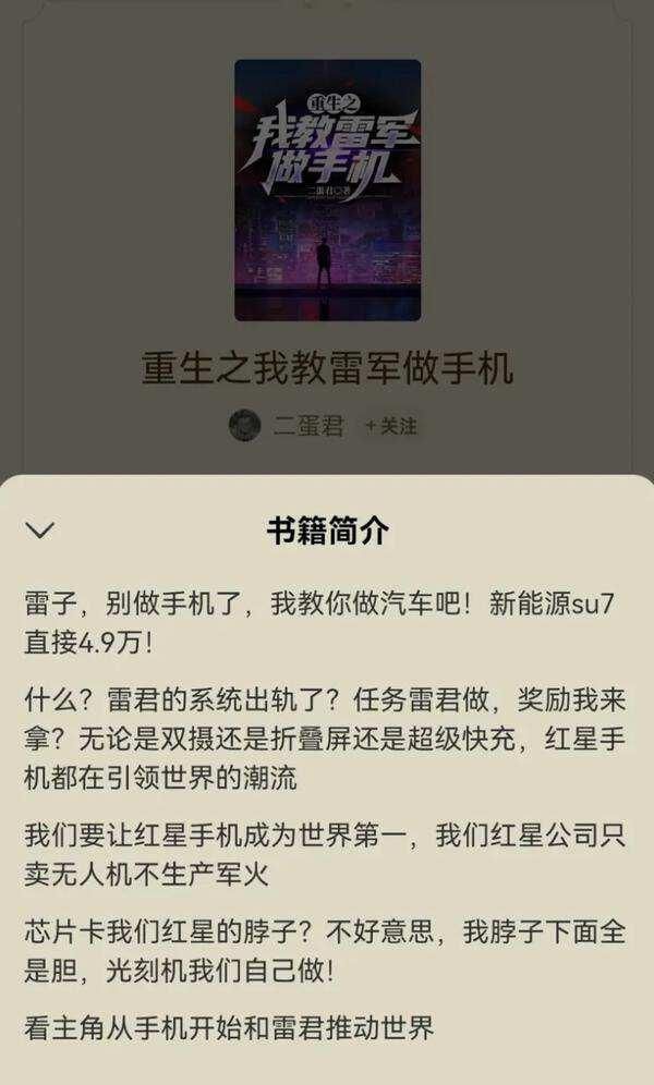 穿越小说《重生之我教雷军做手机》被下架,作者回应:本意写着玩