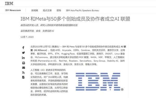 AI 联盟成员,图/ IBM这个联盟有 6 大目标,其中很重要的一项就是搭建开源大模型生态,包括从研究、评估、硬件、安全、公众参与等一整套流程。