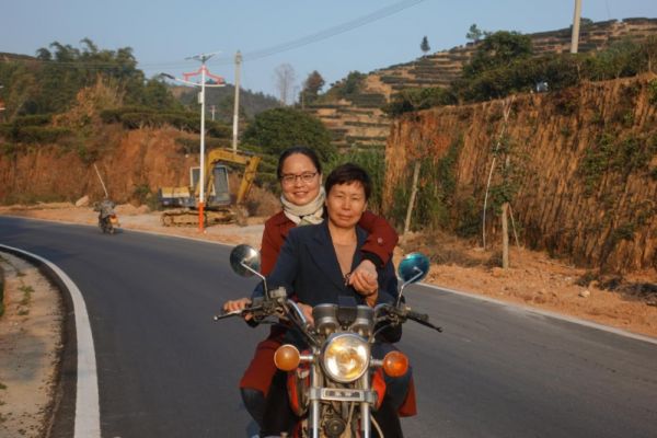 林小静的妈妈对黄灯一见如故。骑摩托车去茶园的路上,小静妈妈一直拉着黄灯的手。(图/受访者供图)