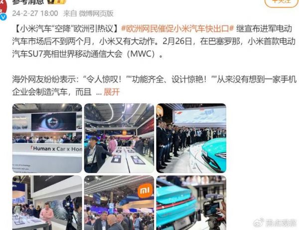 小米最近做的小米汽车,虽然还没有正式上市开卖,但已亮相欧洲了。