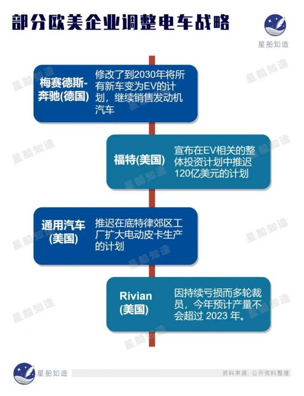 正是这种“想做”又“做不了”导致上下割裂——美国反对美国(下图:部分欧美企业调整电车战略)