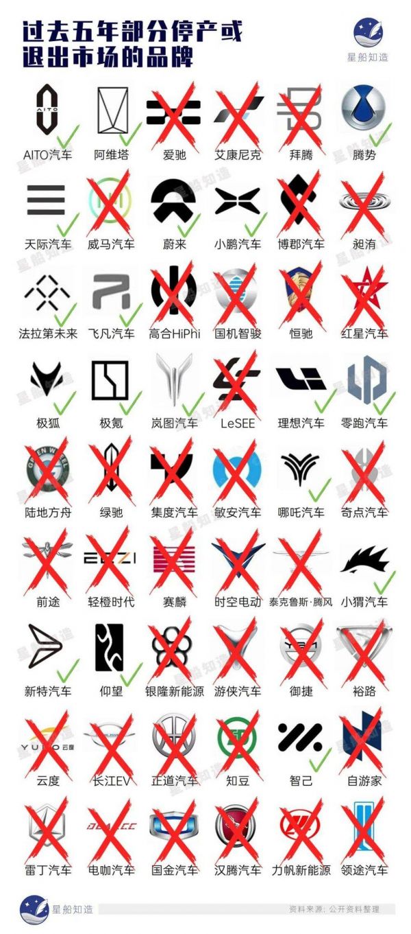 “星船知造”梳理了过去五年部分淘汰情况