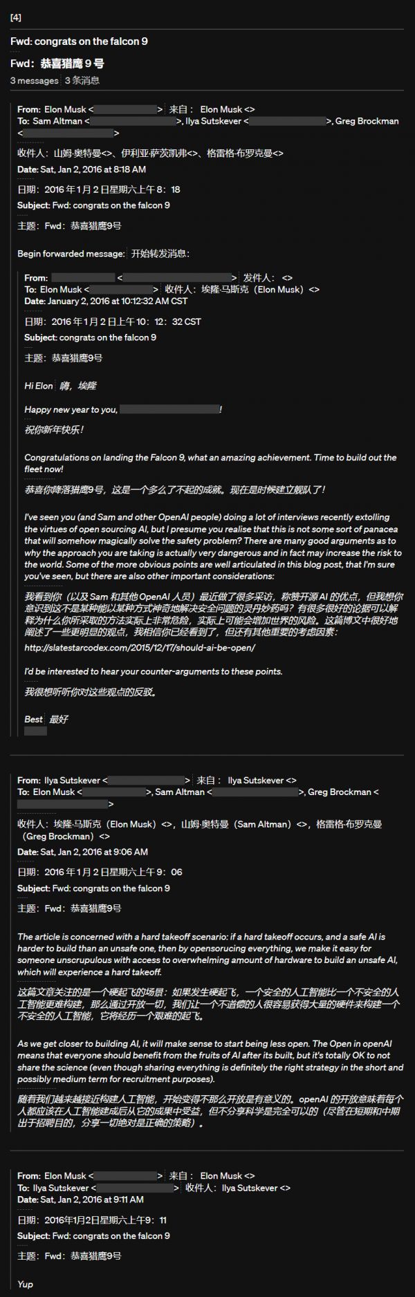 OpenAI正式驳斥马斯克,自曝8年间邮件往来截图