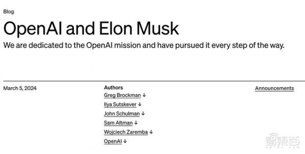 智东西3月6日消息,就在刚刚,OpenAI正式发布公告,对被马斯克(Elon Musk)起诉正式作出回应,驳斥马斯克的多项指责。