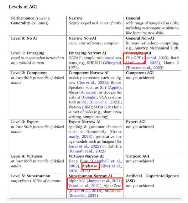 这个系统就将AGI 分成了12个有独特特征的层级,就像我们职场中的不同职级一样,每个等级都代表了不同的能力和责任。(Figure 7)