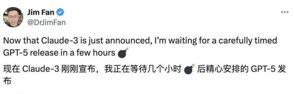 而根据网友们的分析,事实上 Claude 3 正是有意选择在这样一个 OpenAI 可能无法快速实施“打压”的时间节点快速上线,出其不意打 OpenAI 一个措手不及。