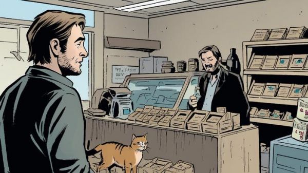 图 | 文字描述:故事叙述者在街角的商店里遇到了一个拿猫粮开玩笑的男人(来源:LORE MACHINE / WILL DOUGLAS HEAVEN)