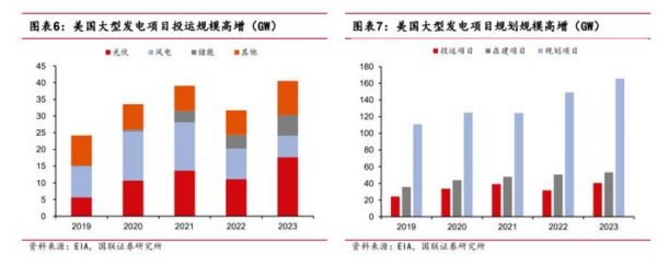 据EIA统计,2023年美国各类大型(1MW以上)发电机组装机40.5GW,同比增长27.8%,2019-2023年CAGR为13.8%,其中光伏和储能增速较高。截至2023年底,美国各类大型发电项目的在建规模为53.2GW,规划项目规模高达165.7GW,预计主要在未来3年投运,长期增长空间广阔。
