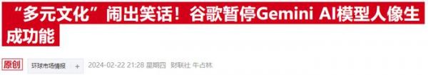 涉嫌逆向种族歧视,谷歌暂停人工智能模型Gemini的图像生成功能
