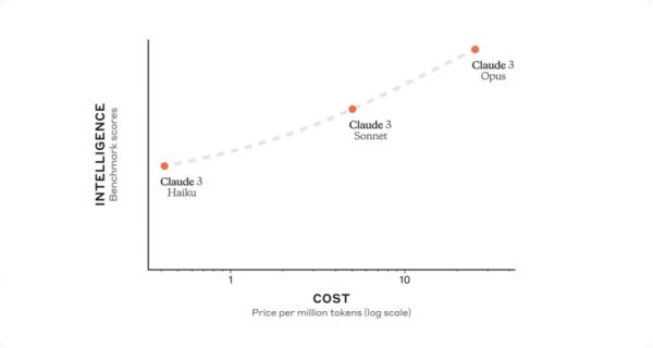在定价策略上,以GPT-4 Turbo的40美元/1M tokens;GPT-3.5 Turbo的2美元/1M tokens为对比。最强能力Opus——90美元/1M tokens,适合最尖端的企业和机构。其接近人类的理解能力,适用于需要高度智能和复杂任务处理的场景,如企业自动化、市场分析和制定策略、复杂的数据分析和金融预测、生物医学研究和开发等。
