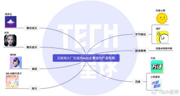 图注:国内互联网大厂在AI社交赛道的布局,Tech星球根据公开信息整理并制图。
