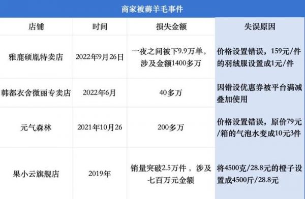事实上,因价格设置错误被薅羊毛,最后损失惨重、甚至闭店的商家案例并不少。