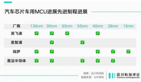 车用MCU使用90nm以下工艺的供应商屈指可数