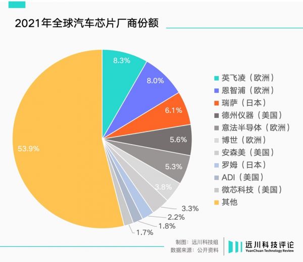 按照麦肯锡的测算,70%以上的汽车芯片都在用90nm以上的成熟制程,14nm以下的先进工艺占比只有6%。
