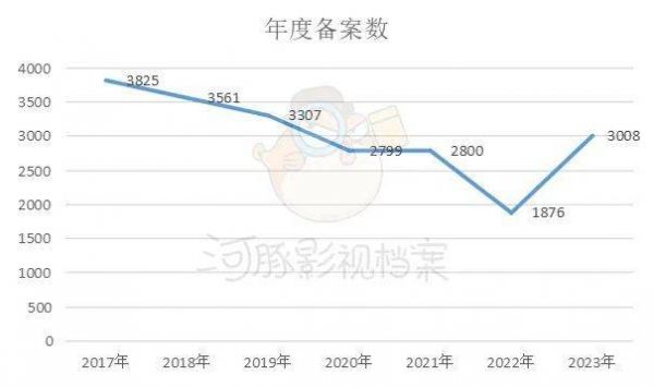在2017年全国电影剧本(梗概)备案、立项数量达到突破性的3825部之后,从2018年开始这一数字就不断在走下坡路 ,到了疫情三年,电影备案数加速下滑,2020年全国共备案影片2799部,2021年2800部,到了2022年电影仅有1876部,创2011年以来新低。到了2023全年,全国共备案立项影片3008项,实现了近五年来首次大幅度增长。