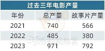 一般来说,每年的电影备案数量决定了未来两到三年的电影产量,2021年、2022年的这个数字直接影响了2024年的电影产量。