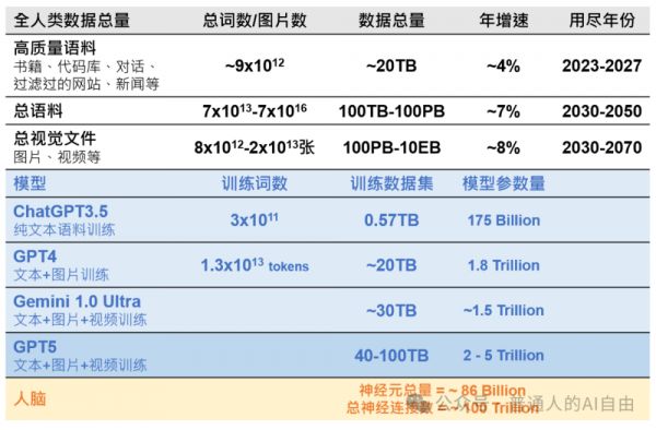 从数据量级的角度来看,大模型正在接近全人类所有数据的量级。坊间传闻的GPT5应该在2024年就会出现,它应该就是“接近AGI”的存在了。但GPT5,不管是它的真正能力还是问世的时间,应该都会隔着“政治正确”的一层,因为不管是大众还是政府都还没有准备好欢迎AGI的降临。