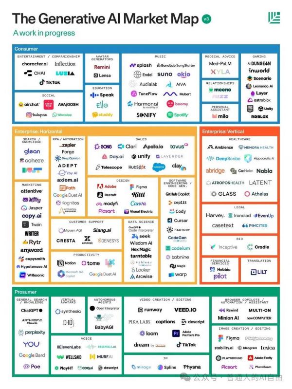 红衫做了一张囊括主要AI创业公司的地图,里面的Logo换得和走马灯一样快。说得好听点是“生态繁荣”,不好听就是“熊瞎子掰苞米”。