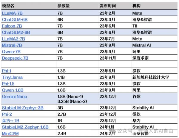 第二个阶梯模型的想象空间更大,它们的参数在1~2B;这个大小就可以在手机和移动硬件上广泛使用了。华为、荣耀、小米、OPPO、VIVO等都已宣布会在手机端侧搭载大模型,目前还只能用最新的骁龙8Gen3旗舰处理器,而且耗能散热都是问题;三星S24上也搭载了Google Gemini Nano。