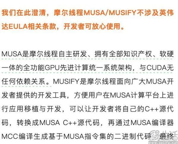 英伟达封杀转译兼容CUDA!摩尔线程:MUSA、MUSIFY不受影响!