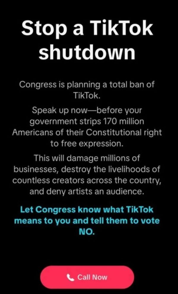 TikTok弹窗号召美国用户,向国会反对封禁