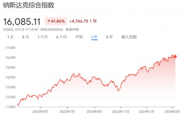 另外,在科技“七巨头”的支撑下,过去一年纳指涨幅超过了40%,标普500指数涨幅也超过了30%。