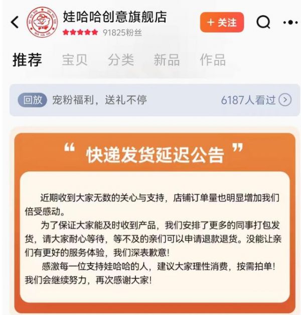 近日,娃哈哈部分产品的销量暴增。据媒体报道,部分电商平台的娃哈哈系列产品都已售罄,也有部分店铺改为预售,最晚约1个月后发货。