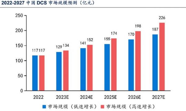 根据数据,2023-2027年国内DCS市场年增长率将维持在9.8%-14%,依此测算2027年DCS市场规模区间为187-226亿元。