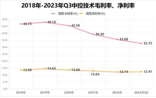 2023年,中控技术的毛利率和净利率分别为32.75%、12.41%,毛利率常年处于行业较高水平,但近年来有小幅下降趋势。