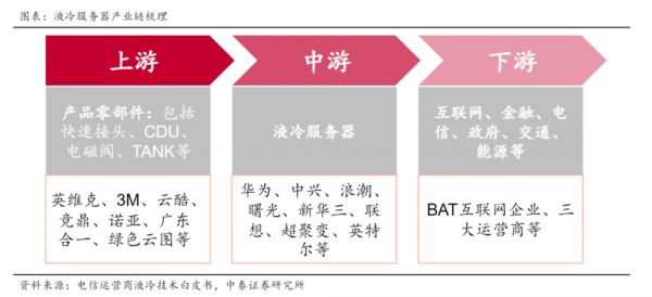 此外,运营商在加速AI投资的同时也大力加速液冷落地,如中国电信在上海投资建设全国规模最大的运营商级智算中心,将全部采用液冷散热方案,液冷市场弹性空间不断扩大。根据中泰证券苏仪等人在1月17日研报中梳理,液冷服务器产业链中上游产品零部件、中游服务器厂商相关标的包括英维克、中兴通讯、浪潮信息、中科曙光、紫光股份(新华三母公司)等。