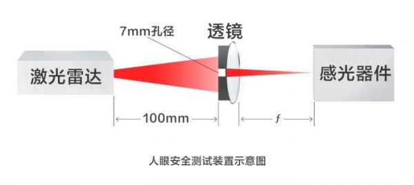 最后,再从国际标准测试下的数据来量化看下这个问题,如下测试实验装置中,接收孔径模拟人眼瞳孔,正常情况下,瞳孔直径为2.5~4mm,遇到强光会收缩,暗室环境瞳孔会放大到5~7mm,本测试采用7mm孔径模拟瞳孔张开能达到的极限场景(即最大通光量),测试距离也是采取最严苛的100mm~1m的距离范围内进行全量测试,随着距离的增加,激光束能量会快速衰减。100mm是人眼能聚焦的最短距离,再近就无法在视网膜成像。