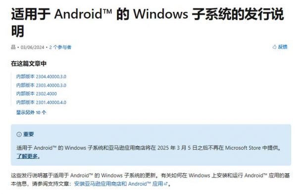 微软日前公告,适用于安卓的 Windows 子系统(WSA)和亚马逊应用商店将在 2025 年 3 月 5 日之后不再在 Microsoft Store 中提供。