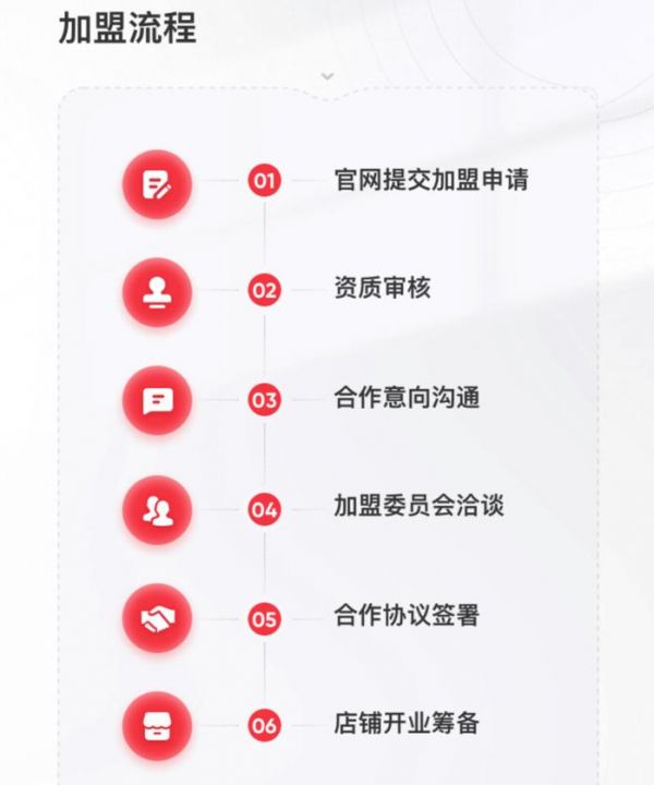 结合公告来看,加盟海底捞总共分为六步,官网提交申请、资质审核、合作意向沟通、加盟委员会洽谈、合作协议签署和店铺开业筹备。