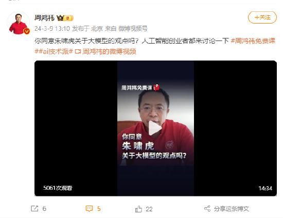 视频|周鸿祎:你同意朱啸虎关于大模型的观点吗?