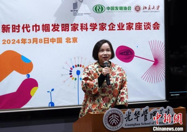 由中国发明协会、世界知识产权组织中国办事处、北京大学联合主办的“新时代巾帼发明家科学家企业家座谈会”,于2024年“三八”国际妇女节当天在北大光华管理学院举行。刘华在座谈会上致辞时作上述表示。