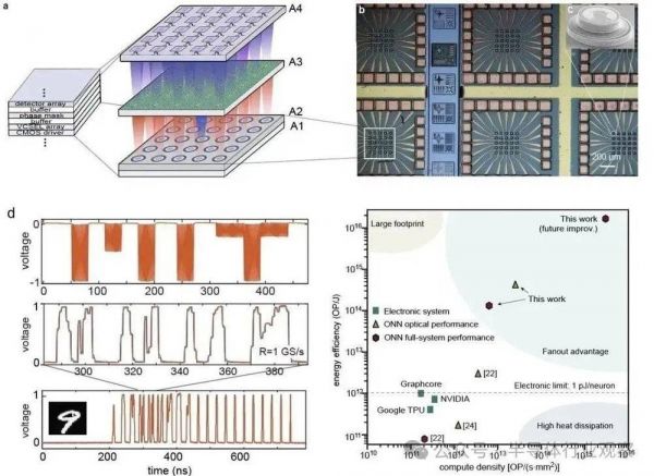 与现有的光学计算系统相比,这种新型光电系统具有三方面的优势,包括低能量损耗、高计算密度、光学非线性。