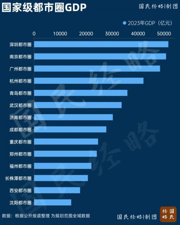 值得注意的是,这里的都市圈GDP均是按照全域规划范围进行统计的,而不是严格的实际范围。