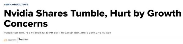 在2008年,NVIDIA裁员、股票被评为“卖出”,NVIDIA受到多方面的质疑。
