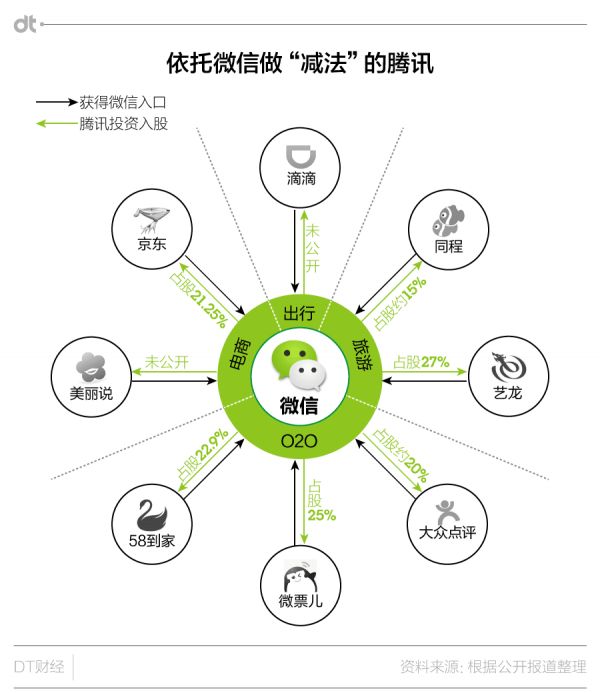 DT财经提到的第二个“减法”时代,也就是腾讯改为投资入股,“间接”做业务的时代。