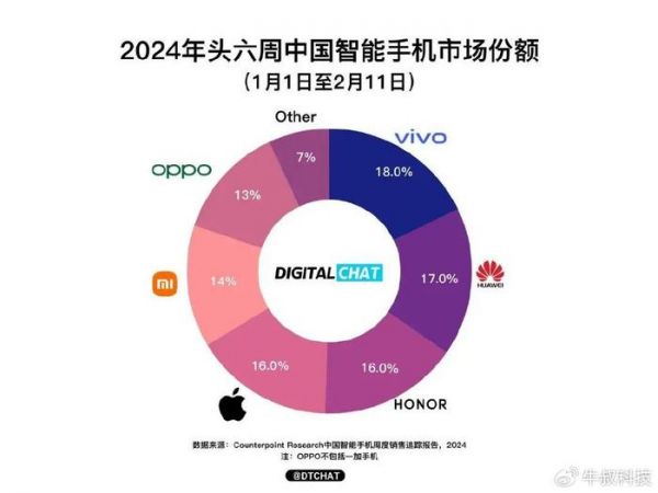 而来到2024年,也有报告支持前六周华为占据了中国市场17%的份额,排名直接来到第二,这个增长速度着实令人吃惊。可以预见的是,接下来P70系列、Mate70系列还会让华为市占率进一步提升。