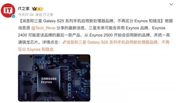 IT之家此前的一份报道中提到:三星未来可能会弃用 Exynos 品牌,Exynos 2400 可能是该品牌的最后一款产品,从 Exynos 2500 开始会启用新的品牌,并统一高通骁龙芯片。