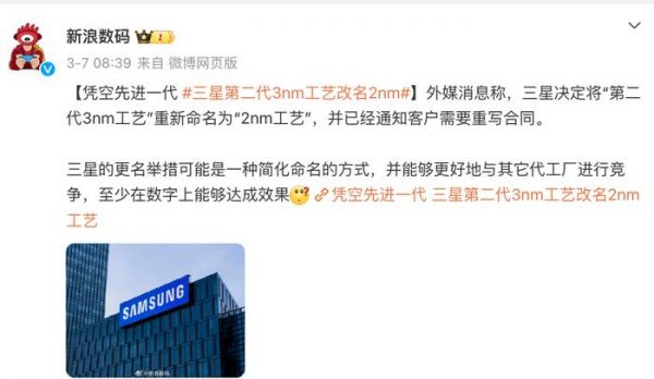 另外,新浪数码的一份报道中提到:三星决定将“第二代3nm工艺”重新命名为“2nm工艺”,并已经通知客户需要重写合同。三星的更名举措可能是一种简化命名的方式,并能够更好地与其它代工厂进行竞争,至少在数字上能够达成效果。