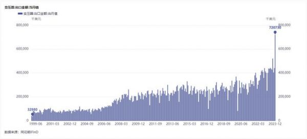 而美国本土的制造业长期处于外包状态,产能一时间存在较大的缺口。从国内变压器出口数据来看,去年12月份单月变压器出口额创下了1999年以来的最高。