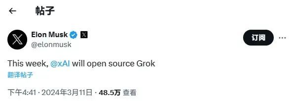 但除了宣布在这周开源Grok的消息以外,马斯克并没有透露更多信息。