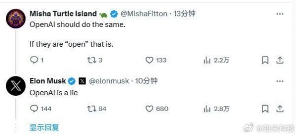 在网友在评论“OpenAI也应当如此,如果它们像名字中的‘Open’那样”时,马斯克忍不住回应了一句:“OpenAI就是谎言。”