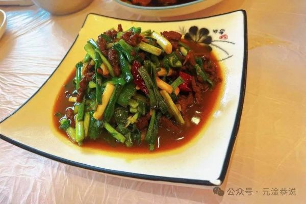 一道简单的江南青蒜炒羊肉丝,咸鲜中甚至带有一点微辣,跳出了苏帮菜的味型定式,十分下饭。