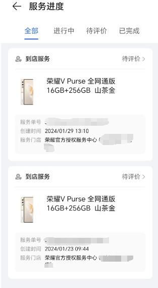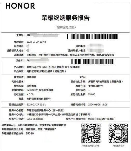 郑先生提供的荣耀终端服务报告