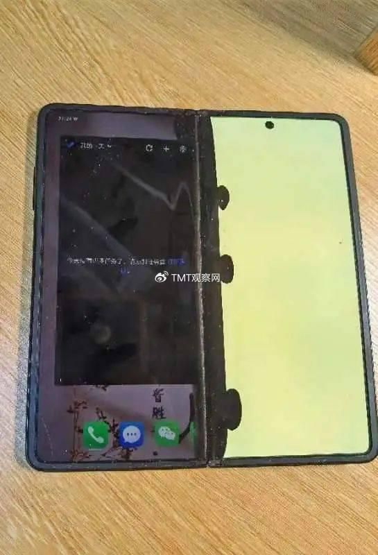 今年1月底,郑先生发现手机内屏再次出现花屏问题,且屏幕保护膜有被撑开的迹象,可能是铰链错位导致的。不过,售后这次以过保为由要求其自费维修。