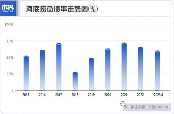 但好在张勇及时悬崖勒马,在2021年年末,宣布将关停海底捞300家经营不善门店的同时,开启啄木鸟计划,并通过“增加临时工”等一系列降本增效措施,才逐渐缓过来。海底捞的资产负债率也重新迎来下滑走势,并在2021年配售募资约20亿元,以及第二年扭亏为盈后,开始变得越来越有钱。