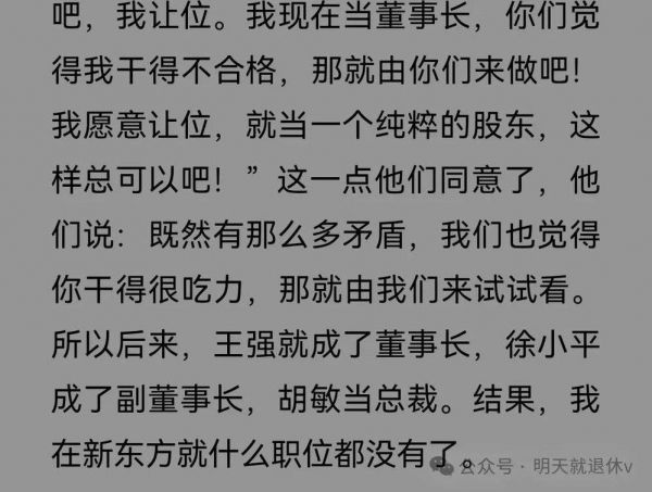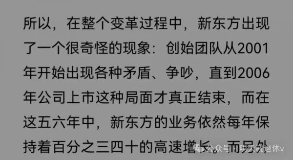 然后为了准备上市,要各位股东把自己原本的利润留在公司账上,比如原来他们一年可以拿几百万,现在一年就只能拿20万。就立马心里不爽,不爽之后又开始抱怨,觉得这是俞敏洪的阴谋,要把他们所有的钱都拿走,自己一个人留着。从2001~2006年,公司持续派系斗争好几年。